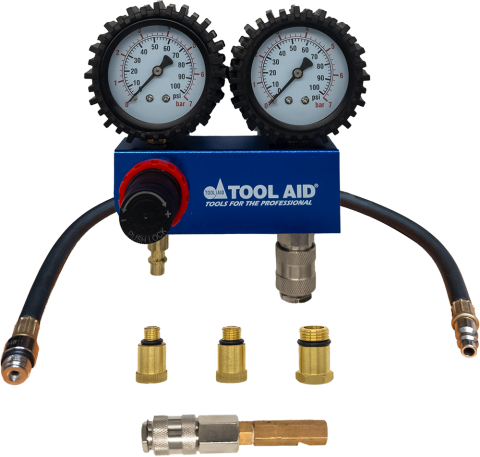 • Test hose and gauges come with quick connect fittings for easy setup and use